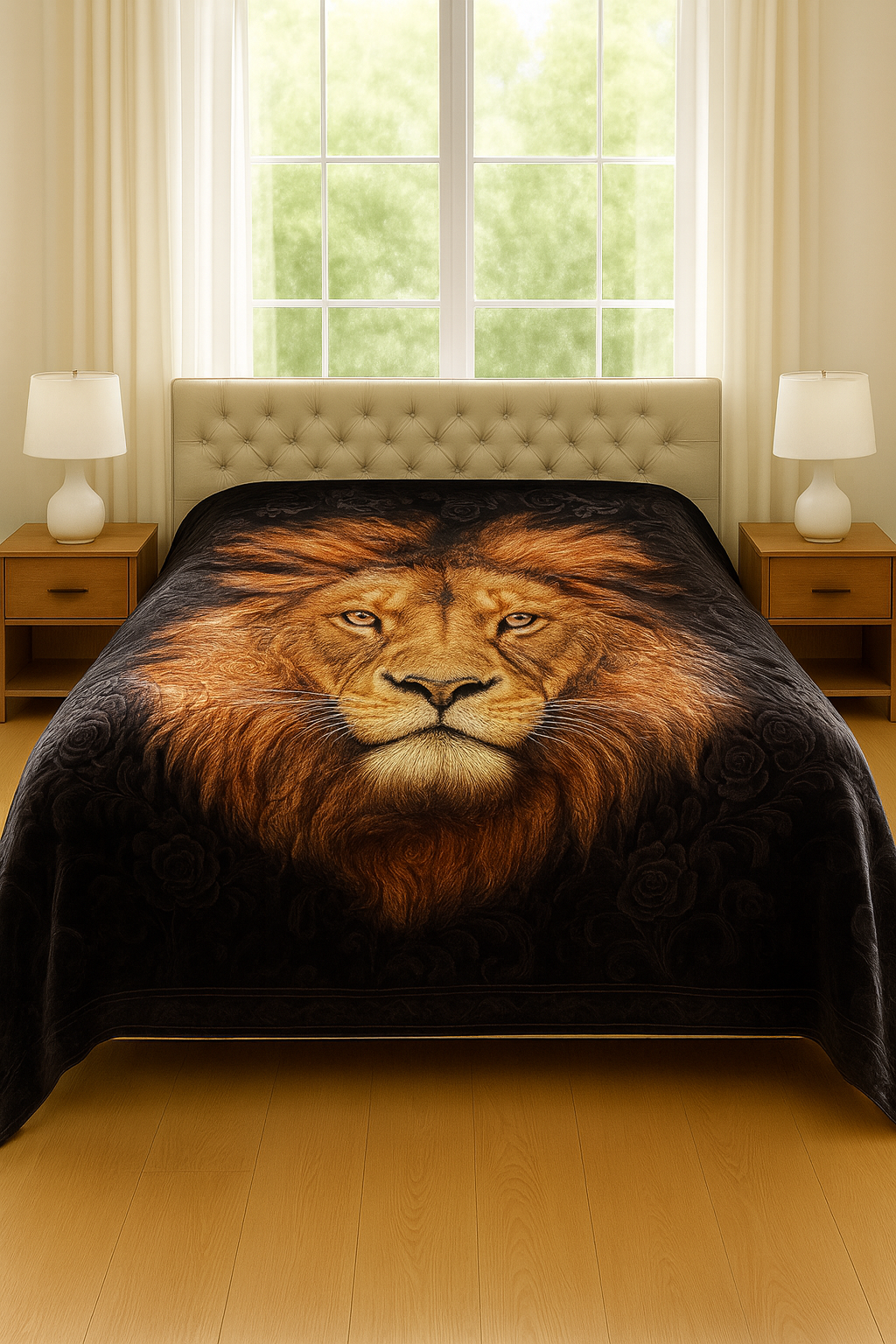 Ultra Soft Double-Sided California King Blanket – High-Definition Wolf/Lion Design
